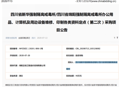 【綿陽正信公司·招標(biāo)部消息】受四川省新華強制隔離戒毒所/四川省綿陽強制隔離戒毒所委托由我公司招標(biāo)代理部代理的“四川省新華強制隔離戒毒所/四川省綿陽強制隔離戒毒所辦公用品、計算機及周邊設(shè)備維修、印制各類資料定點(第二次)”于2020年7月13日采購與招標(biāo)網(wǎng)掛網(wǎng)采用詢價方式招標(biāo),下圖為采購與招標(biāo)網(wǎng)掛網(wǎng)截圖,該項目于7月20日在綿陽正信工程造價咨詢有限公司進行開評標(biāo)活動,預(yù)祝開標(biāo)順利為采購人招到滿意的單位。