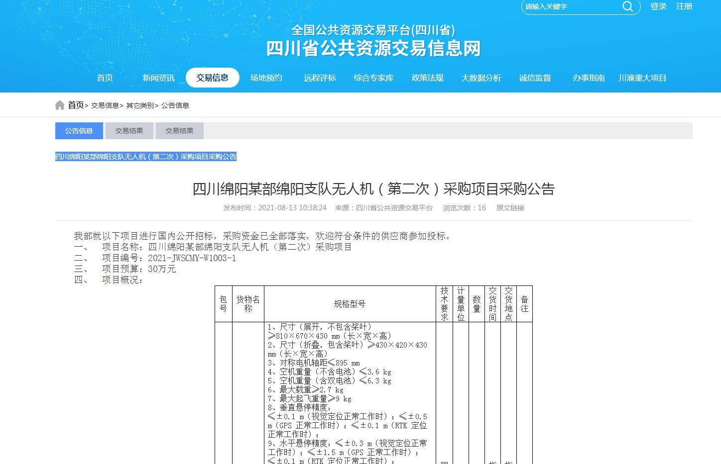 【綿陽正信·招標(biāo)部消息】我公司受四川綿陽某部綿陽支隊(duì)委托,對四川綿陽某部綿陽支隊(duì)無人機(jī)(第二次)采購項(xiàng)目擬采用公開招標(biāo)方式進(jìn)行采購,本項(xiàng)目于2021年08月13日在《全國公共資源交易平臺(四川?。饭?,于2021年09月6日13:30在綿陽市涪城區(qū)三江西路北段1號桃花島商業(yè)街第4幢商業(yè)樓(詳見一樓電子顯示屏)開標(biāo)。